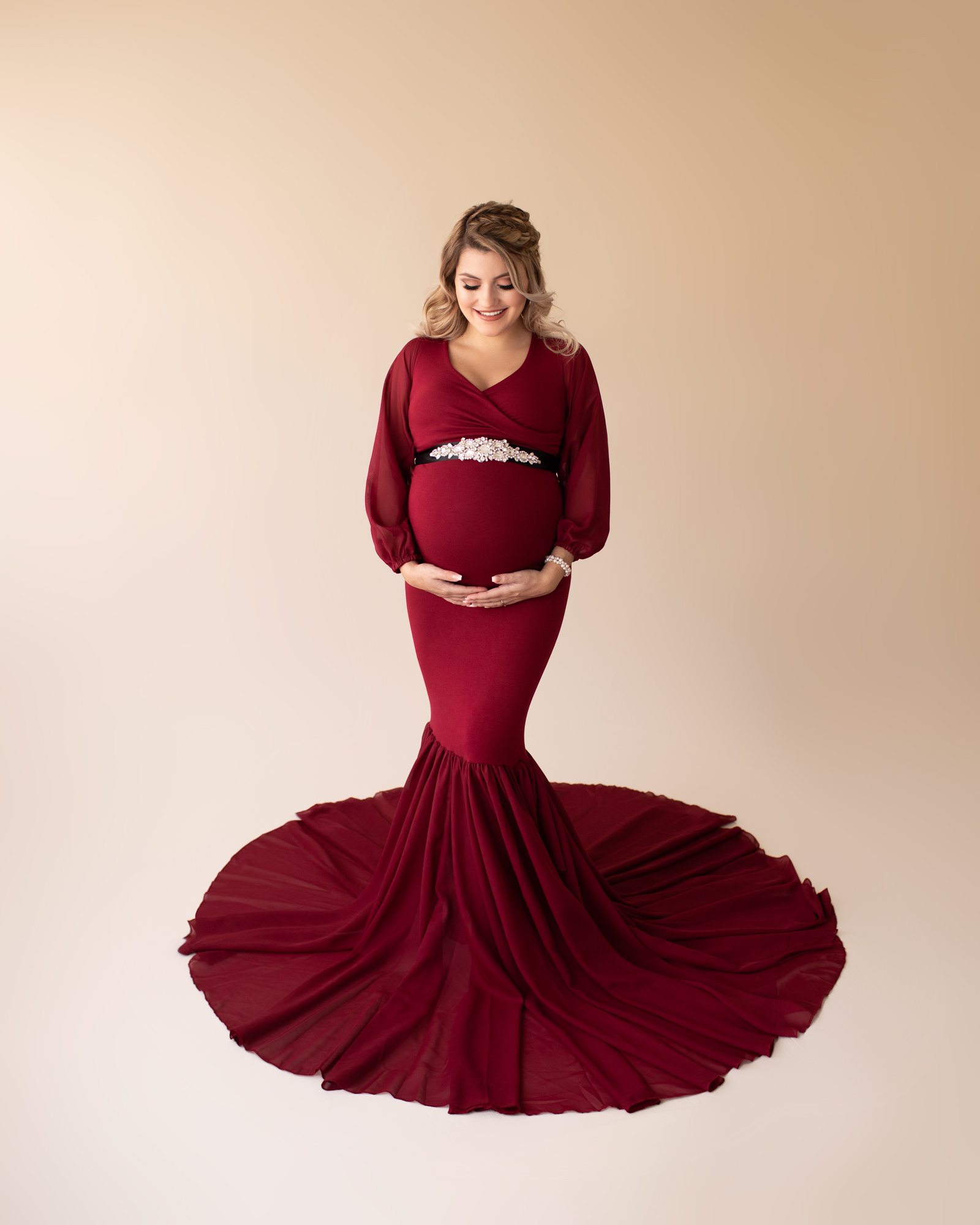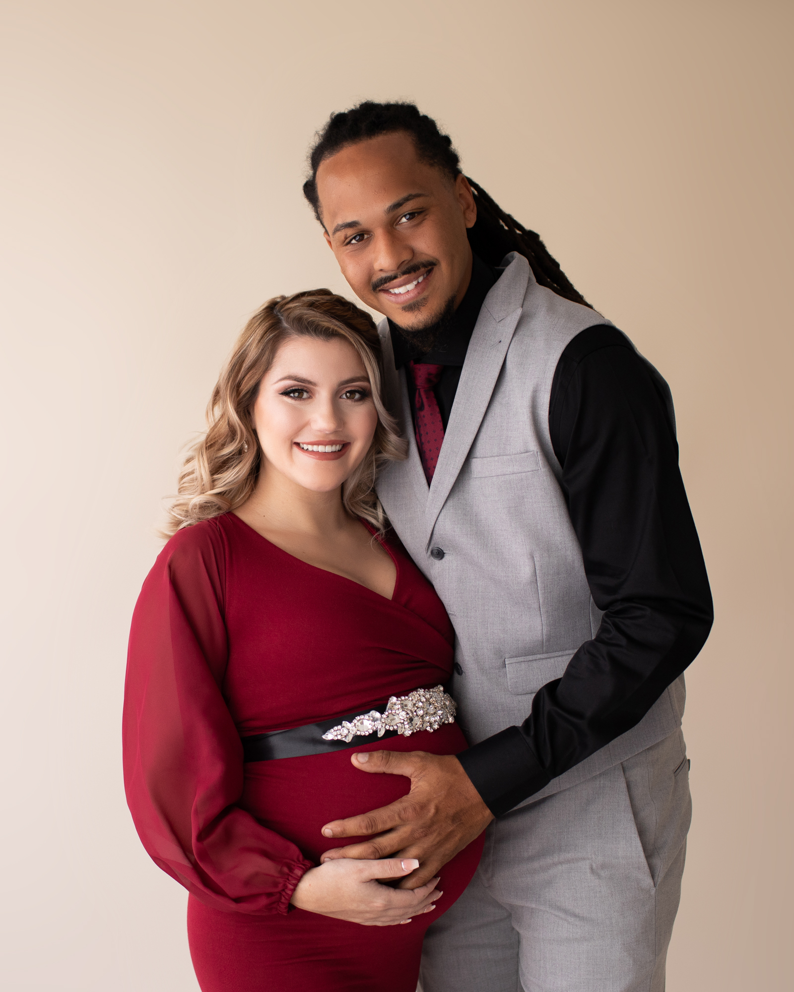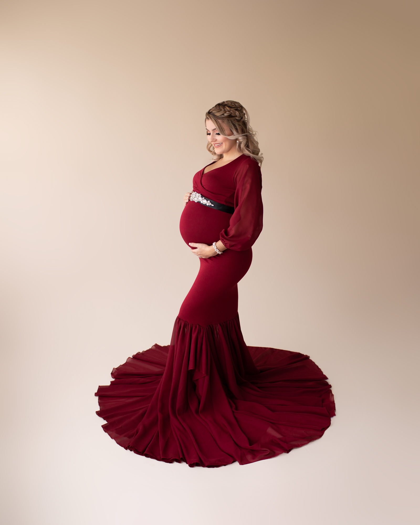 This was no exception. Savannah is eager to outfit her baby girl in all kinds of feminine accessories. She is also a strong woman and was not shy about a touch of drama. The maternity gown was a flowy, burgundy with a trumpeted skirt. This provided a richness and depth that enriched the final maternity photos. I couldn’t be happier with the result.